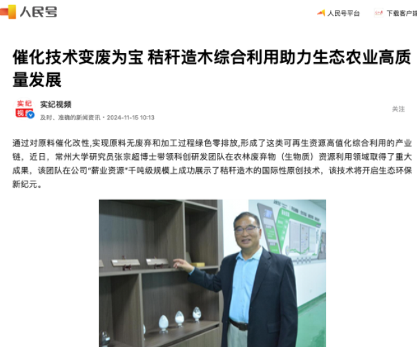 Xinhua News Agency: National distinguished expert, Professor Zongchao Zhang at Changzhou University: From straws to artificial wood for full utilization and high-quality development of eco-friendly agriculture
